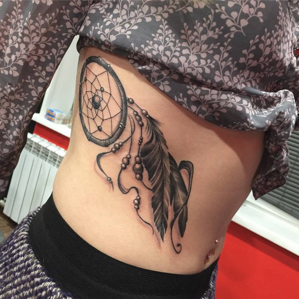 Тату ловец снов на ребрах