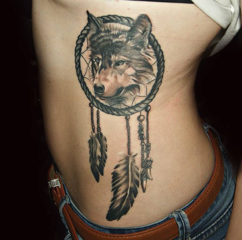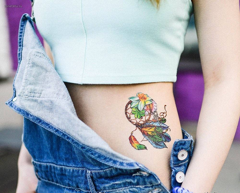 Тату ловец снов на ребрах акварель