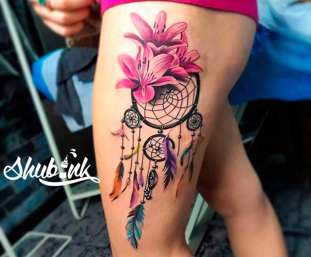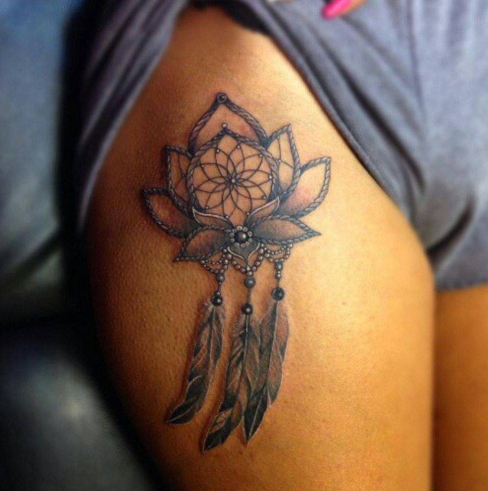 Еще одна преимущественно женская локация для татуировки с ловцом снов — бедро