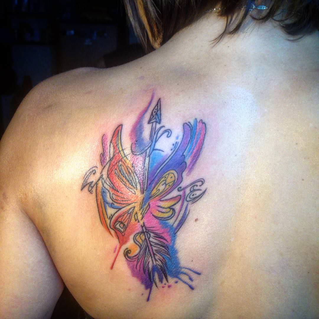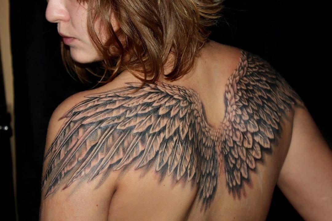 Тату на лопатке с крыльями