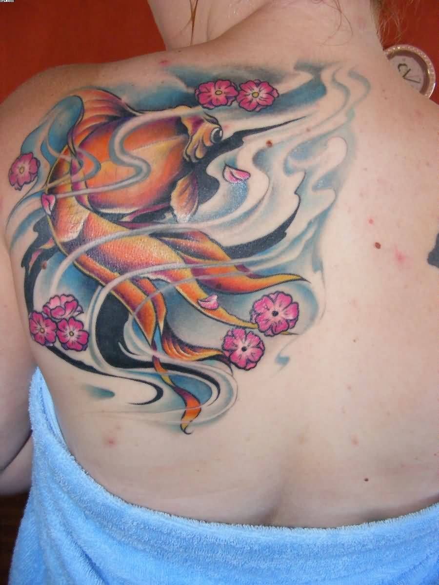 Тату с карпом на спине мужчины
