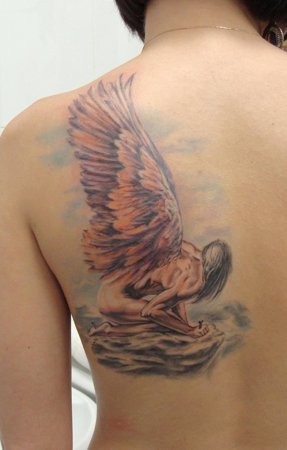 - Падший ангел – может совершать добрые и злые поступки, в зависимости от собственных желаний. Татуировка может обозначать, что человек совершил скверный поступок, о котором сожалеет.