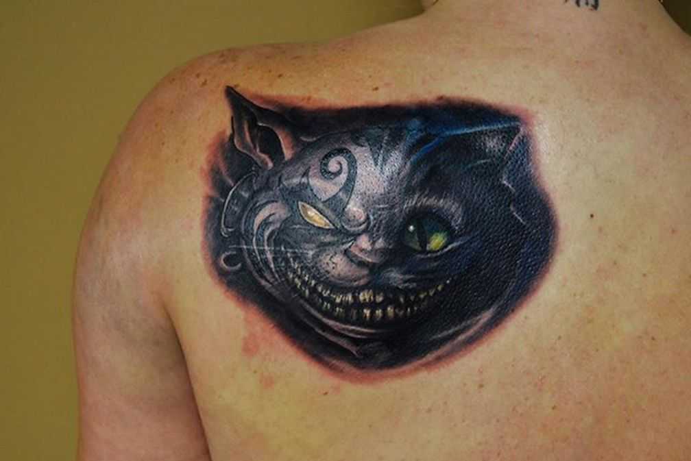 Суть заключается в том, что на спине имитируют разрыв или разрез кожи, а внутри вместо мышц и костей виднеются металлические механизмы, поршни и шестеренки. То есть человек предстает в роли робота. Такая татуировка требует от мастера незаурядных художественных способностей;