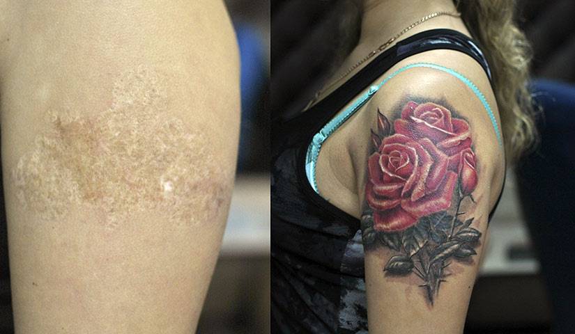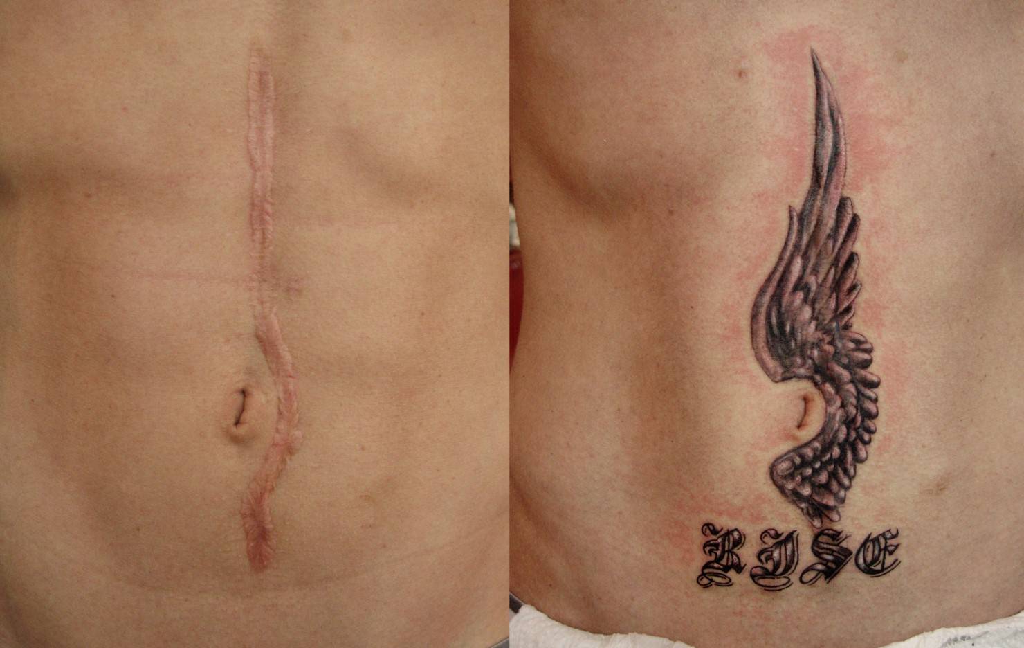 Как показывает статистика, практически у каждого второго человека есть на теле хотя бы один кожный дефект, который можно заметить. Для этого есть масса причин: ожоги, хирургические рубцы, травмы или же шрам от кесарева сечения (у некоторых рожавших). Современное и популярное искусство татуировки позволяет маскировать неровности тела, скрывая их за татуировками, эскизы которых можно подобрать под любую форму и размер рубца.