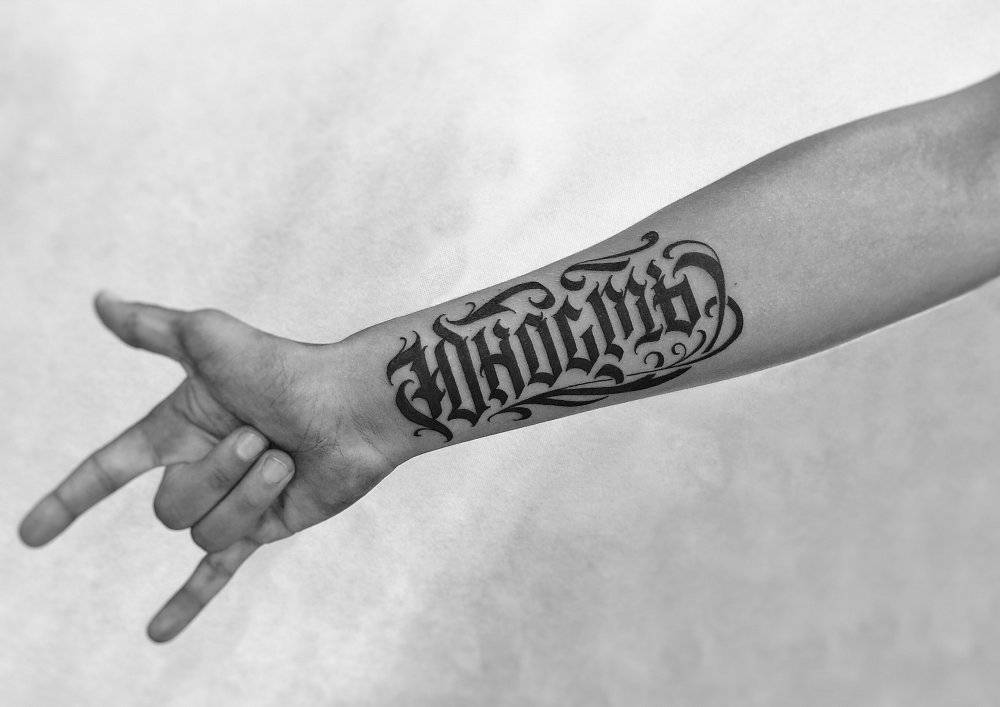 Ниже рассмотрим основные моменты, на которые следует обратить особое внимание при создании мужской тату надписи на руке