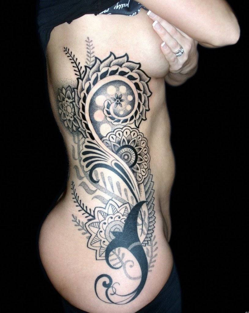 Располагая узоры по бокам поясницы, девушки визуально затеняют их. В итоге, женские тату на пояснице являют миру идеальную фигуру. Так же, женщины способны вытянуть себя. Достаточно провести наколку от поясницы и до верха позвоночника. Вертикальная линия, подобно длиной молнии на платье, удлиняет стан, как бы прибавляет роста.