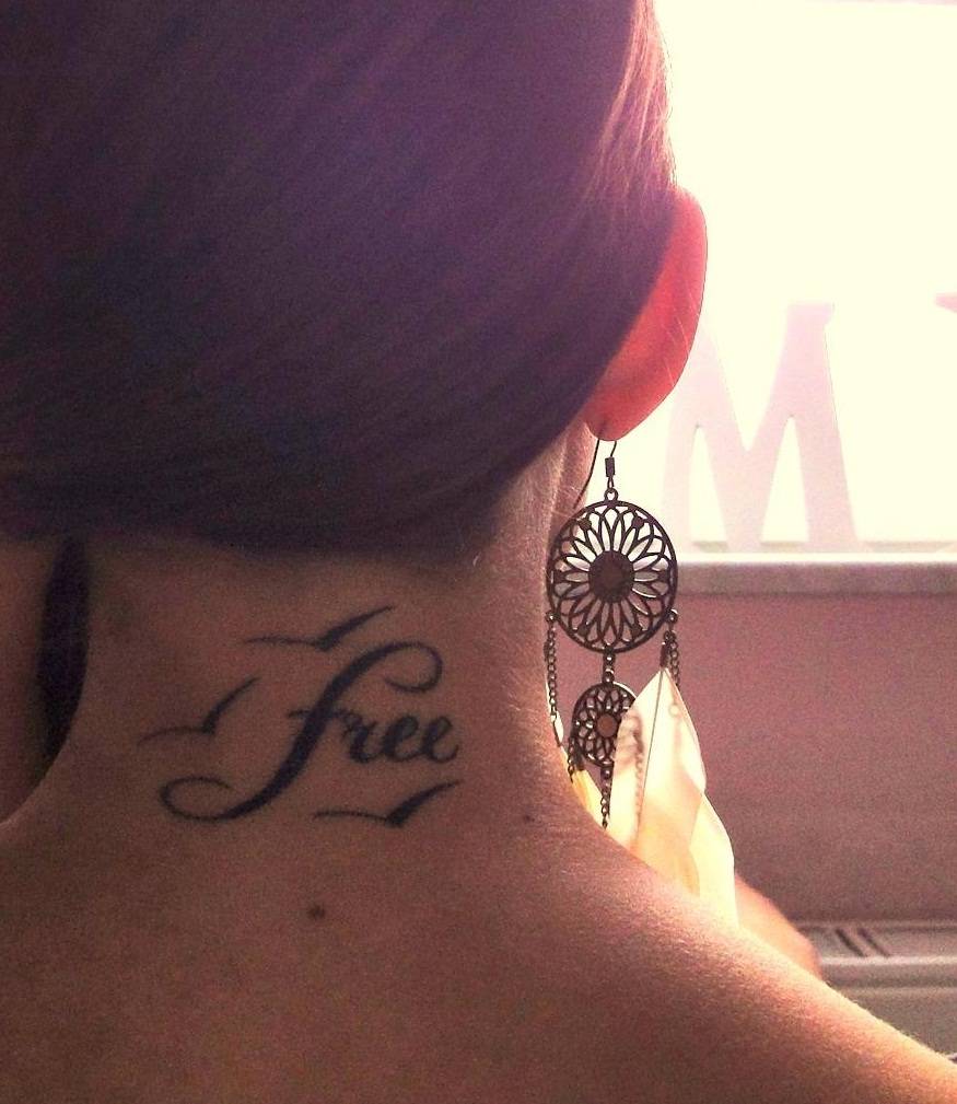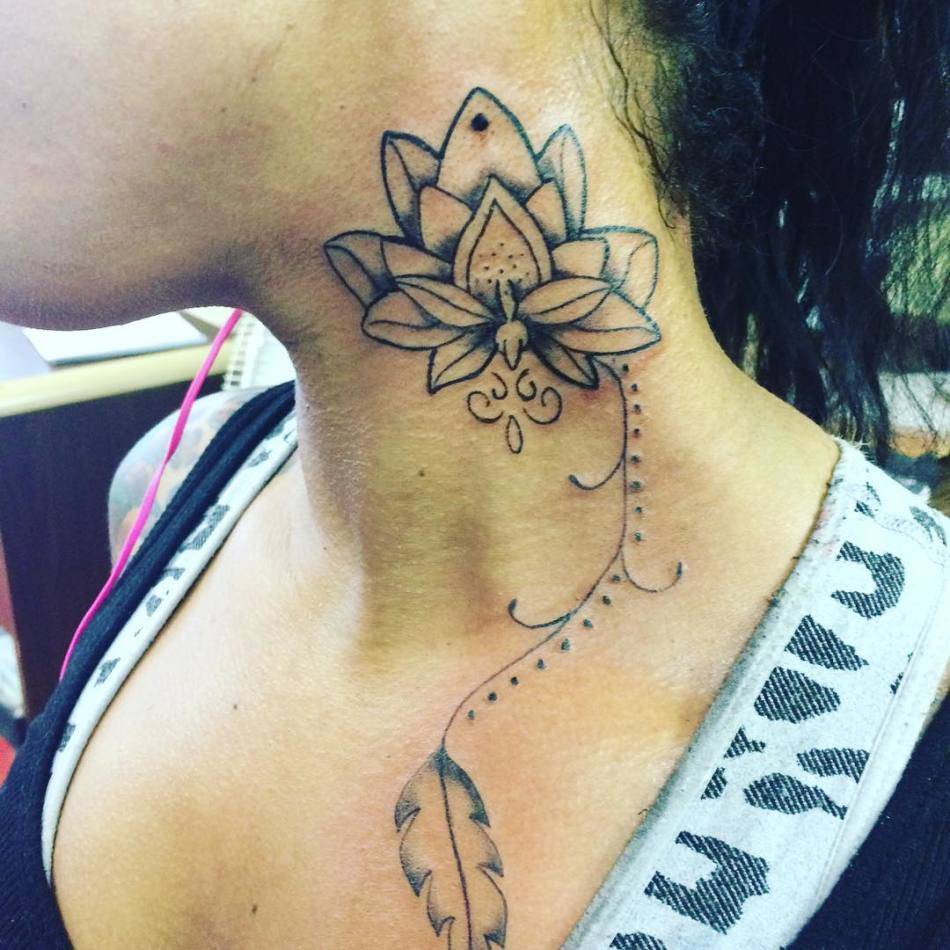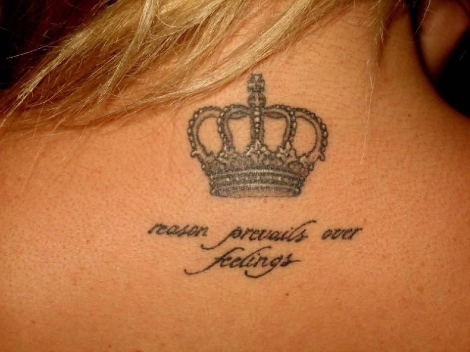 Татуировки на шее для девушек сзади, сбоку: корона, цветы, иероглифы, надписи и их значение